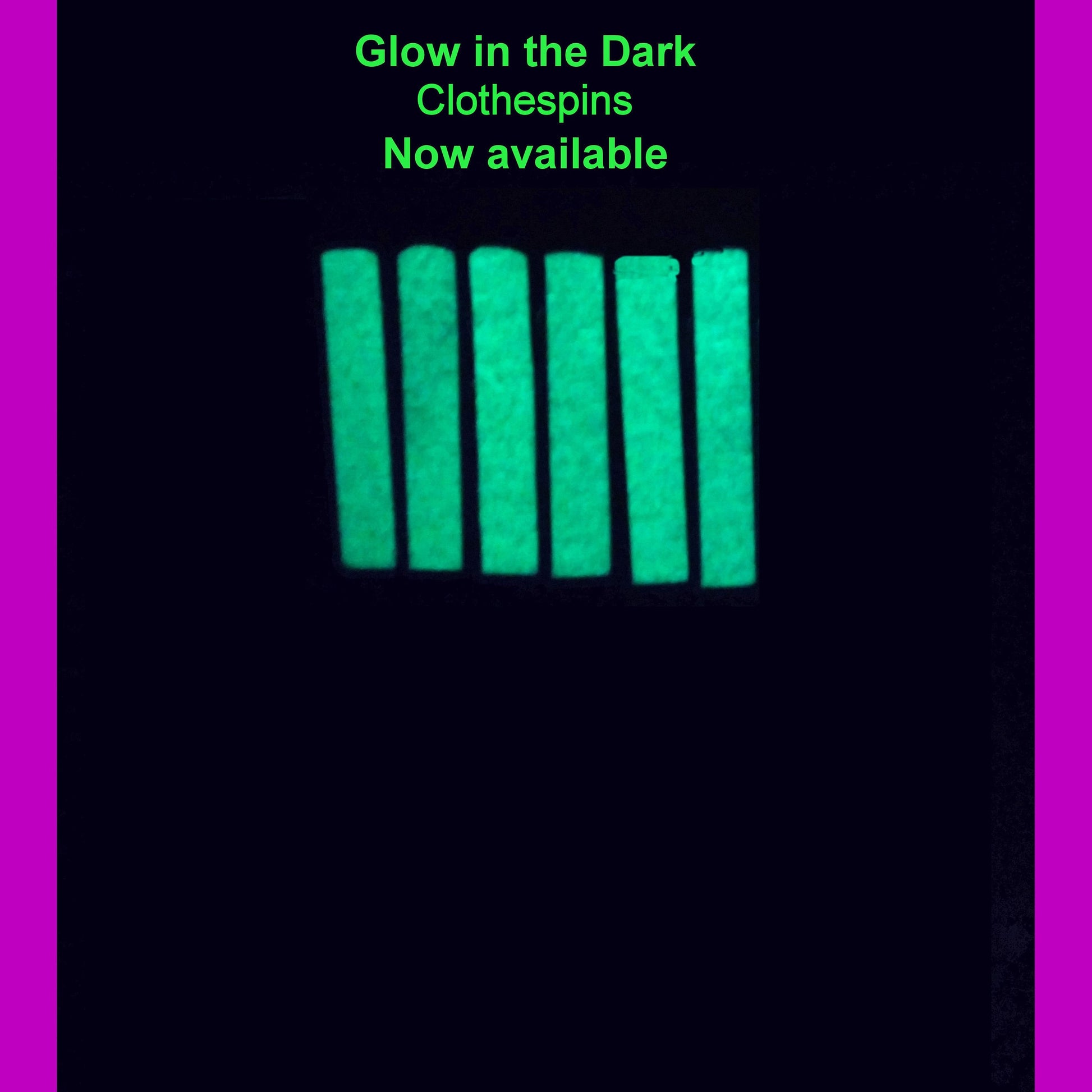 Clothespin colors available are pink, red, green, light blue, blue, purple, black, natural wood, white, and white/glows green in the dark*. See photo.